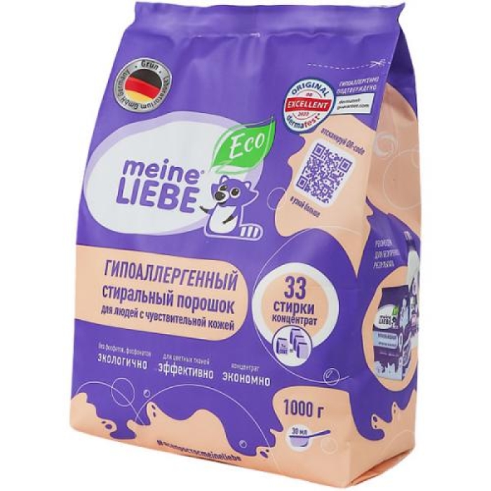 Стиральный порошок Meine Liebe гипоаллергенный создан с учетом потребностей людей с чувствительной кожей и предрасположенностью к аллергическим реакциям. Продукт прошел клинические испытания в институте Dermatest (Мюнхен, Германия) и получил статус гипоаллергенного, что подтверждает его безопасность для использования.
