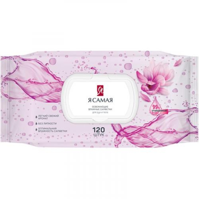 Освежающие влажные салфетки «Я Самая» — это идеальный выбор для заботы о коже рук и тела. Эти салфетки не только очищают, но и увлажняют, обеспечивая комфорт и свежесть в любое время. Лосьон, входящий в состав, на 99% состоит из ледниковой воды, что делает его особенно полезным для всех типов кожи, включая чувствительную.