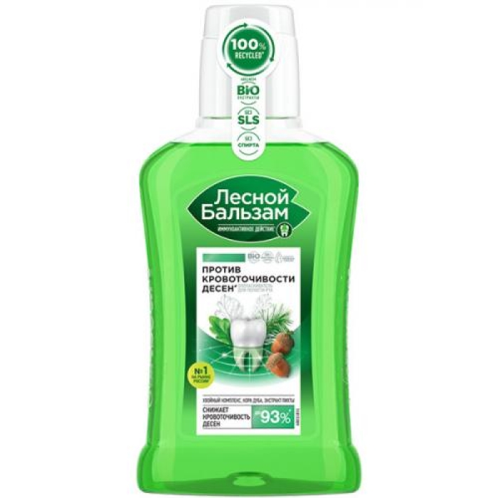 Ополаскиватель для полости рта Лесной бальзам на отваре трав с корой дуба — это эффективное средство, специально разработанное для борьбы с кровоточивостью десен. Благодаря уникальной формуле, содержащей экстракты натуральных трав, он не только улучшает состояние десен с первого применения, но и способствует укреплению местного иммунитета полости рта, снижая риск развития заболеваний десен.