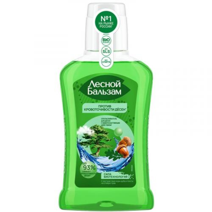 Ополаскиватель для полости рта Лесной бальзам на отваре трав с экстрактами коры дуба и пихты предназначен для эффективной защиты десен и полости рта. Благодаря иммуноактивному действию, он поддерживает иммунитет и создает барьер против бактерий, что способствует уменьшению кровоточивости десен до 93%. Аргинин, входящий в состав, укрепляет эмаль зубов, защищая их от кариеса и обеспечивая антибактериальный эффект. Ферментированное оливковое масло способствует комплексному восстановлению десен, обладает противовоспалительными и антиоксидантными свойствами. Продукт одобрен Стоматологической Ассоциацией России, что подтверждает его высокое качество и эффективность.Особенности и преимущества