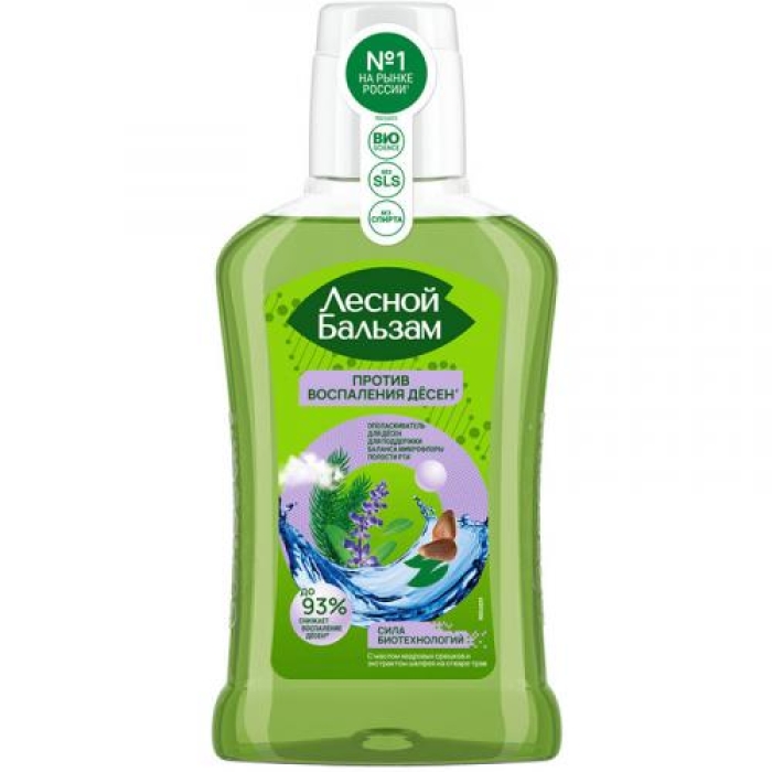 Ополаскиватель для полости рта «Лесной бальзам» с маслом кедровых орешков и экстрактом шалфея — это эффективное средство, разработанное для поддержания здоровья десен и полости рта. При регулярном использовании он способен снижать воспаление десен до 93%, что подтверждено клиническими исследованиями. Продукт поддерживает баланс микробиома, что способствует улучшению общего состояния полости рта. Насыщенный хвойный вкус делает процесс полоскания приятным и освежающим. Не содержит спирта, что делает его безопасным для ежедневного применения, включая использование с ирригатором.Особенности и преимущества