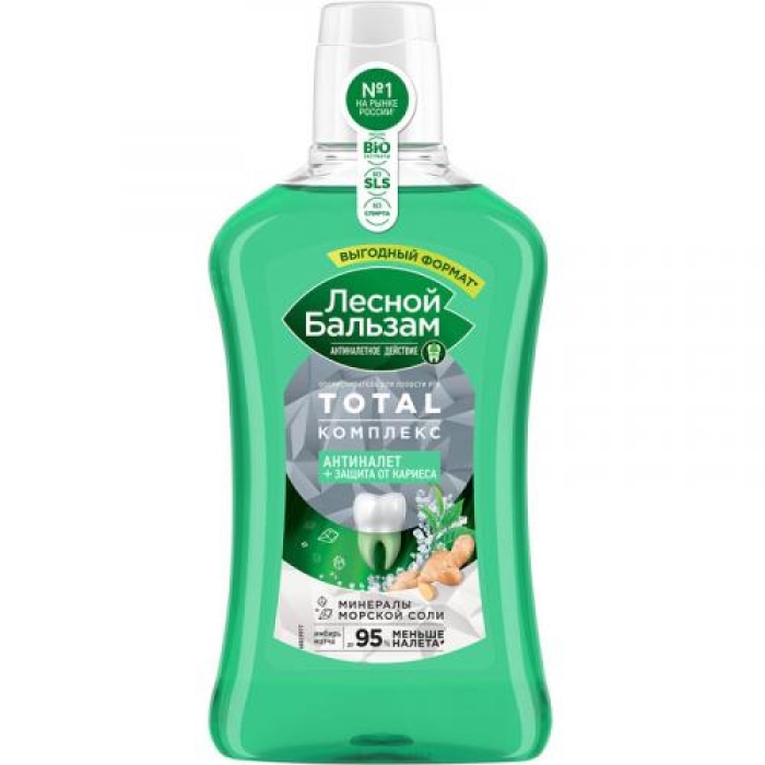 Ополаскиватель для полости рта Лесной бальзам Total Комплекс с морской солью, имбирем и чаем матча — это эффективное средство, направленное на борьбу с зубным налетом, который является основной причиной кариеса, изменения цвета зубов, образования зубного камня и кровоточивости десен. Состав продукта включает 98% ингредиентов натурального происхождения, что делает его безопасным для ежедневного использования. Формула обогащена минеральными компонентами и экстрактами трав, что усиливает ее действие и способствует поддержанию здоровья полости рта.Особенности и преимущества