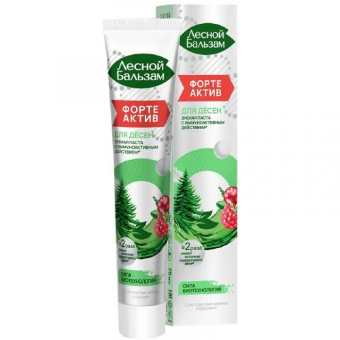 Зубная паста «Лесной бальзам Форте Актив» предназначена для экспресс-восстановления десен и обладает уникальным составом, который включает экстракты малины, брусники, коры дуба и облепихи, а также масло чайного дерева и хвойный экстракт. Эти компоненты в сочетании обеспечивают двойное снижение воспаления и кровоточивости десен, что делает пасту идеальным выбором для поддержания здоровья полости рта.