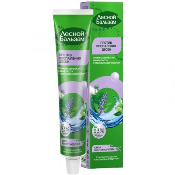 Зубная паста «Лесной бальзам» с экстрактом шалфея и алоэ вера предназначена для комплексного ухода за полостью рта. Она эффективно борется с воспалением десен, укрепляет их и насыщает витаминами, что особенно важно для поддержания здоровья зубов. При регулярном использовании паста демонстрирует накопительный эффект, снижая воспаление десен до 93%. В состав входят ферментированное оливковое масло и аргинин, которые способствуют улучшению состояния десен и зубов.