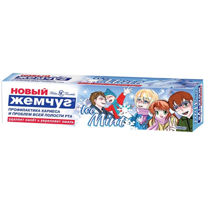 Гелевая зубная паста Новый жемчуг Ice Mint с насыщенным ароматом мяты идеально подходит для всей семьи, включая детей от 3-х лет. Она разработана с акцентом на здоровье зубов и красоту улыбки, обеспечивая длительную свежесть дыхания. Регулярное использование пасты помогает снизить риск кариеса и бережно очищает зубы от налета, не повреждая эмаль. Активные компоненты формулы способствуют повышению устойчивости зубной эмали к кислотам, что особенно важно для регионов с низким содержанием фтора в воде. Паста содержит оптимальное количество фтора, безопасного для детей, и прошла клинические и токсикологические испытания.