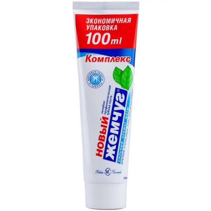 Зубная паста Новый жемчуг Комплекс с ярким ароматом мяты — это идеальный выбор для поддержания здоровья зубов и свежести дыхания. Она содержит уникальный комплекс фтора и кальция, который эффективно укрепляет эмаль зубов, способствует ее реминерализации и обеспечивает надежную защиту от кариеса. Паста обладает насыщенным мятным вкусом, который надолго сохраняет ощущение свежести и чистоты дыхания, что делает ее подходящей как для взрослых, так и для детей старше 7 лет.