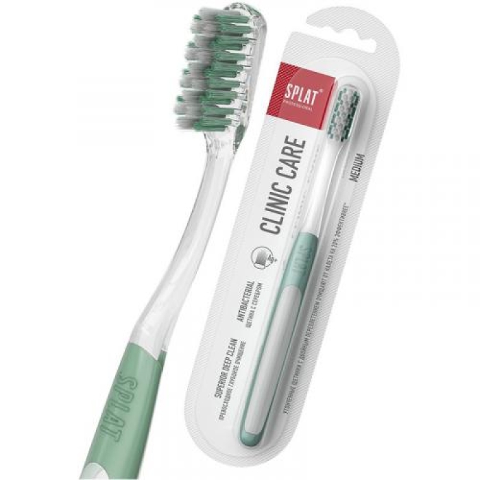 Зубная щетка Splat Professional Clinic Care Medium с двухуровневой щетиной разработана для эффективного очищения полости рта по методике Bass. Этот метод подразумевает особое положение щетки под углом 45 градусов, что позволяет тщательно очищать зубы даже в труднодоступных местах. Уникальная структура щетинок обеспечивает мягкий, но при этом плотный контакт с зубной эмалью, что способствует бережному уходу за зубами и деснами.