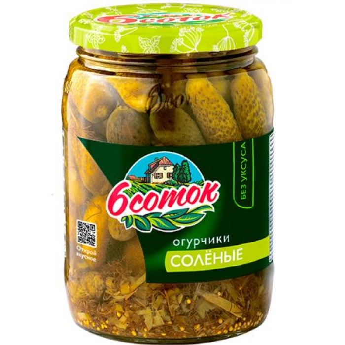 Приготовленные из свежесобранных огурцов, хрустящие соленые огурчики 6 Соток с добавлением свежей зелени и специй станут настоящим украшением любого застолья. Эти огурцы не содержат уксуса, что позволяет сохранить их натуральный вкус и аромат. В составе продукта используются только качественные ингредиенты: свежие огурцы, питьевая вода, соль, молочная кислота в качестве регулятора кислотности, зелень укропа, семена горчицы, чеснок и черный перец горошком.Особенности и преимущества