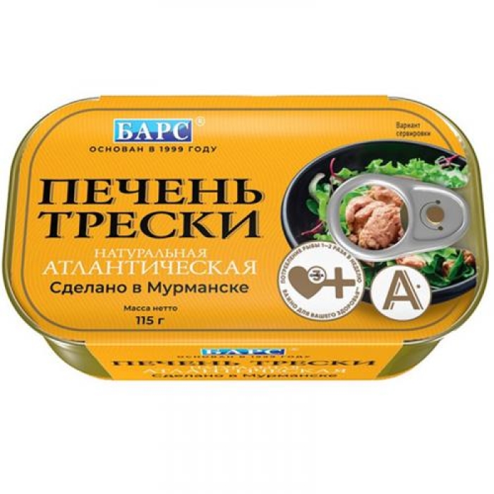 Печень трески Барс натуральная из мороженого сырья — это высококачественный продукт, который изготавливается из печени атлантической трески, отобранной с особой тщательностью. Этот деликатес не только обладает насыщенным вкусом, но и является источником полезных веществ, необходимых для поддержания здоровья. Печень трески содержит омега-3 жирные кислоты, витамины A и D, а также минералы, такие как фосфор и селен, что делает её ценным дополнением к рациону.