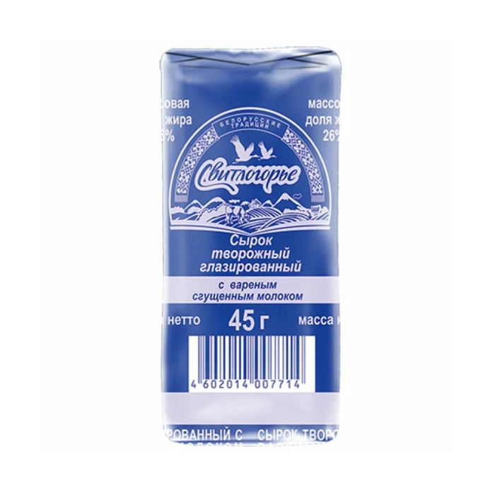 Сырок творожный «Свитлогорье» с вареной сгущенкой — это идеальное сочетание нежного творога и сладкой сгущенки, которое порадует как детей, так и взрослых. Продукт обладает высоким содержанием жира (26%), что делает его особенно вкусным и питательным. Сырок подходит для перекусов, десертов и как добавка к чаю или кофе.Особенности и преимущества