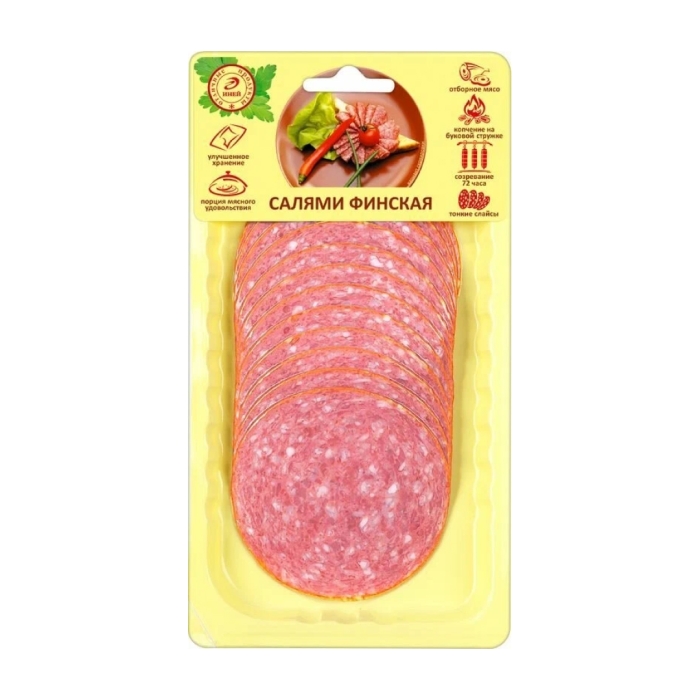 Салями Финская варено-копченая от бренда «Иней» — это высококачественный мясной продукт, который сочетает в себе традиционные рецепты и современные технологии производства. Колбаса обладает насыщенным вкусом и ароматом, благодаря использованию отборного мяса и тщательно подобранных специй. В процессе приготовления используется метод холодного копчения, что придает продукту особую нотку и делает его идеальным для закусок и бутербродов.