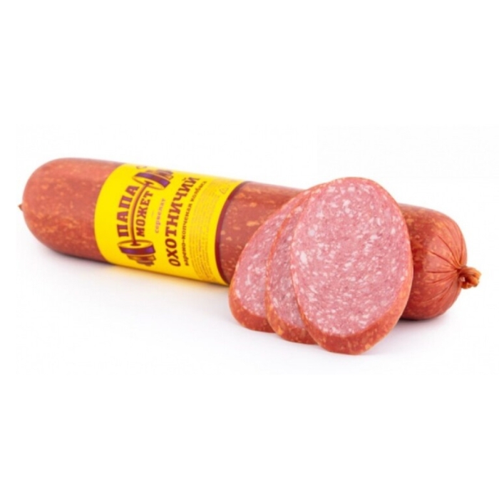 Сервелат Охотничий варено-копченый от бренда «Останкино» — это высококачественный мясной продукт, который сочетает в себе традиционные рецепты и современные технологии производства. Этот сервелат отличается насыщенным вкусом и ароматом, что делает его идеальным для закусок, бутербродов и различных блюд.Особенности и преимущества