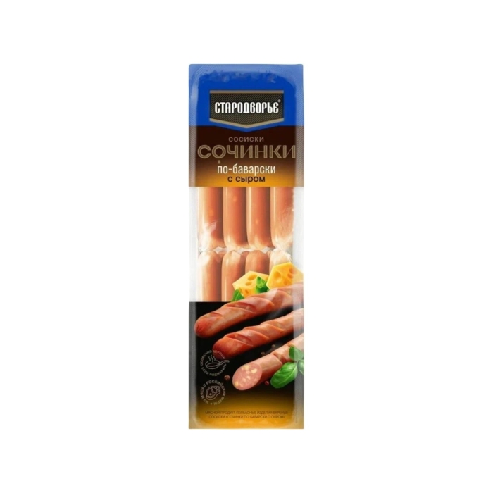 Сосиски Сочинки по-Баварски с сыром от бренда «Стародворские колбасы» — это высококачественный продукт, который сочетает в себе традиционные рецепты и современные технологии производства. Эти сосиски изготовлены из отборного мяса, что обеспечивает их насыщенный вкус и аромат. Добавление сыра придаёт им особую кремовую текстуру и делает их идеальными для различных блюд.Особенности и преимущества