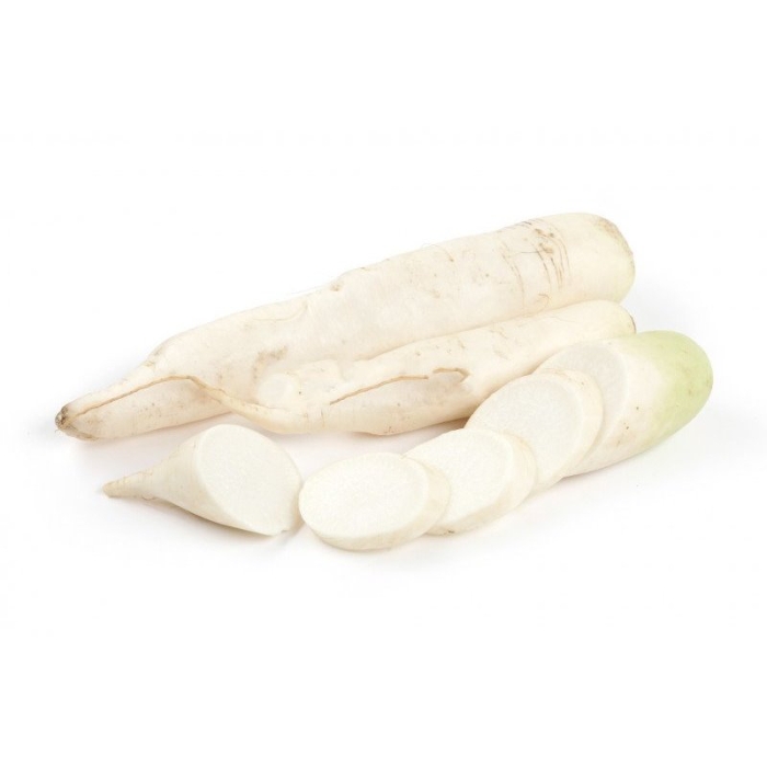Редька дайкон — это уникальный корнеплод, который привносит в вашу кухню не только разнообразие, но и множество полезных свойств. С длиной до 35 см и диаметром около 4 см, каждый корнеплод весит примерно 500 г. В отличие от зеленой редьки, дайкон обладает более нежным вкусом благодаря меньшему содержанию горчичных масел, а его аромат значительно мягче, чем у редиса. Этот овощ идеально подходит для тех, кто ценит легкость и свежесть в блюдах.Особенности и качество