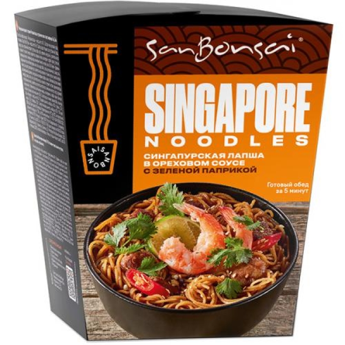 Лапша SanBonsai Singapore Noodles в ореховом соусе с зеленой паприкой — это изысканное блюдо паназиатской кухни, которое легко готовится. Просто залейте кипятком и подождите 5 минут, чтобы насладиться насыщенным вкусом и ароматом. Продукт не содержит глютена, что делает его подходящим для людей с непереносимостью этого вещества.Особенности и преимущества