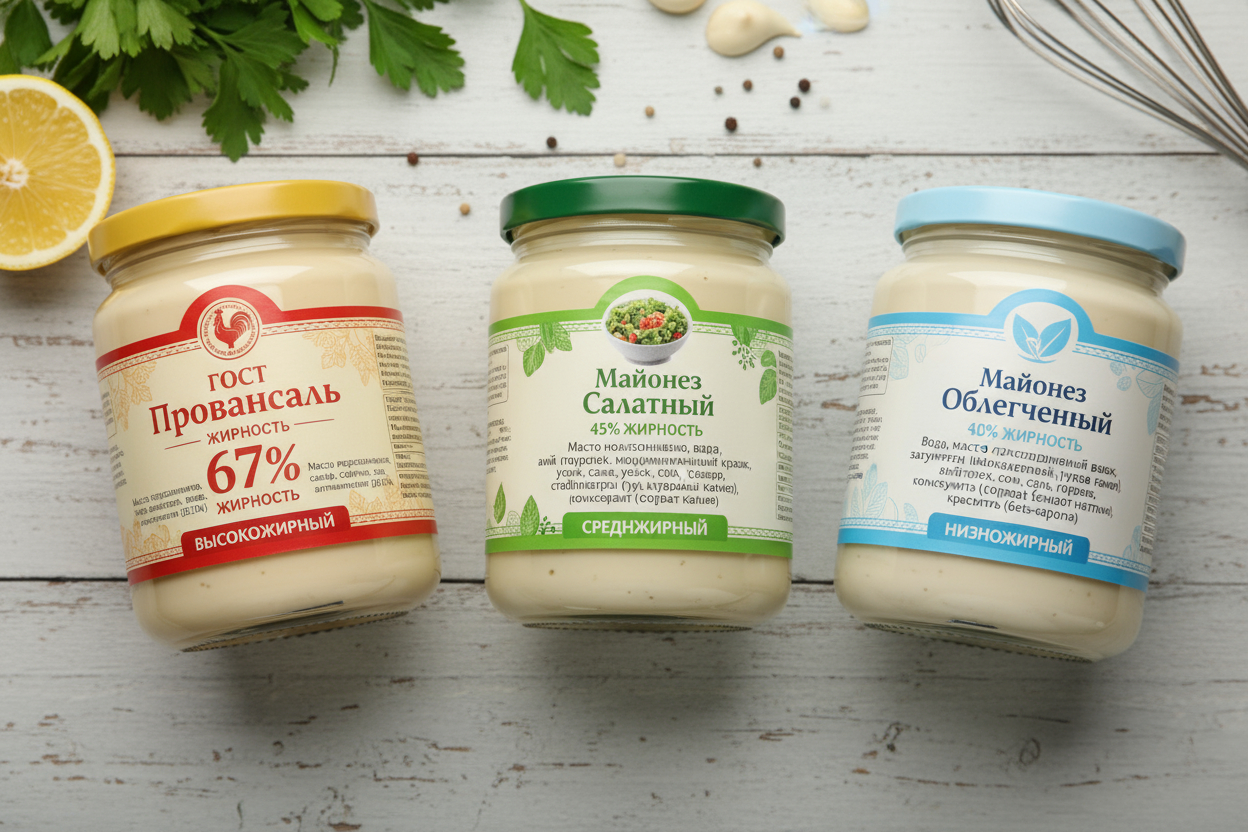 - Жирность ниже 55% — скорее всего “майонезный продукт”, а не настоящий.