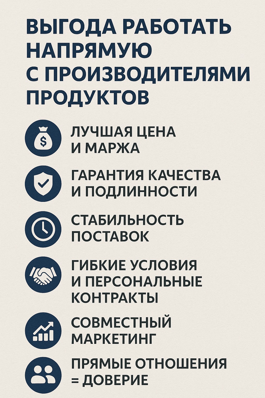 Работа напрямую с производителями — это не просто экономия. Это шаг к независимости, прозрачности и устойчивости вашего бизнеса. Вы контролируете цепочку поставок, получаете честные цены, гарантированное качество и возможность развивать собственный бренд на прочной основе.