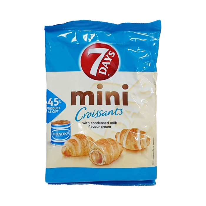 Круассаны-мини «7DAYS» с вареной сгущенкой — это идеальное лакомство для любителей сладкого. Эти мини-круассаны обладают хрустящей корочкой и нежной начинкой, которая дарит неповторимый вкус. Сгущенное молоко, используемое в качестве начинки, придает продукту особую сладость и кремовую текстуру, что делает его отличным выбором для завтрака или перекуса.Особенности и преимущества