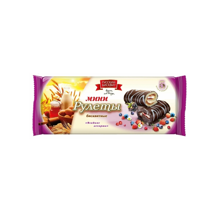 Мини рулеты «Русский бисквит» ягодное Ассорти — это изысканное лакомство, которое сочетает в себе нежный бисквит и разнообразие ягодных начинок. Каждый рулет изготовлен с использованием высококачественных ингредиентов, что обеспечивает не только отличный вкус, но и высокую питательную ценность. Ягоды, входящие в состав, богаты витаминами и антиоксидантами, что делает этот продукт не только вкусным, но и полезным.Особенности и преимущества