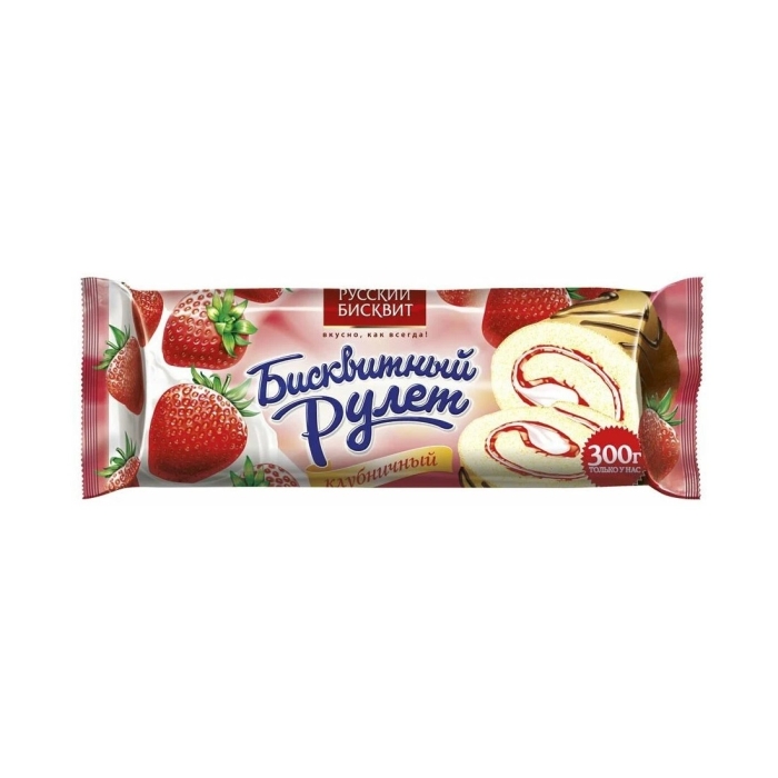 Рулет бисквитный «Русский бисквит» с клубникой и сливками — это изысканное лакомство, которое сочетает в себе нежный бисквит и свежий вкус клубники. Каждый рулет изготовлен из высококачественных ингредиентов, что обеспечивает его превосходный вкус и текстуру. Бисквитный рулет идеально подходит для десертов, угощений на праздниках или просто для приятного чаепития.Особенности и преимущества