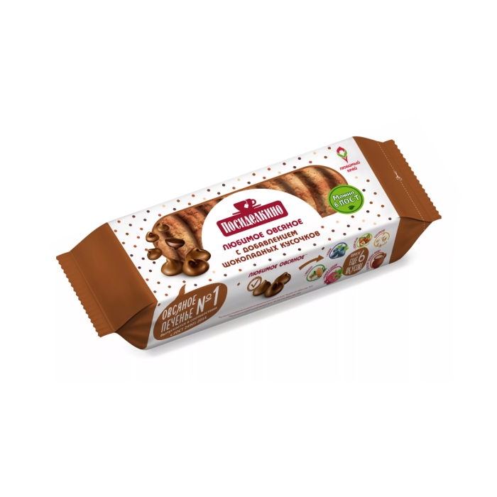 Овсяное печенье «Посиделкино» с кусочками шоколада — это идеальный выбор для любителей сладостей, которые ценят натуральные ингредиенты и высокое качество. Печенье изготавливается из отборных овсяных хлопьев, что делает его не только вкусным, но и полезным. Овсянка известна своими питательными свойствами, она богата клетчаткой, витаминами и минералами, что способствует улучшению пищеварения и поддержанию нормального уровня сахара в крови.