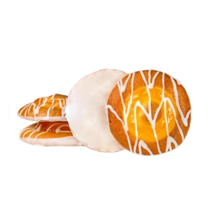 - Состав: мука пшеничная, сахар, масло растительное, яйца, апельсиновый сок, глазурь белая