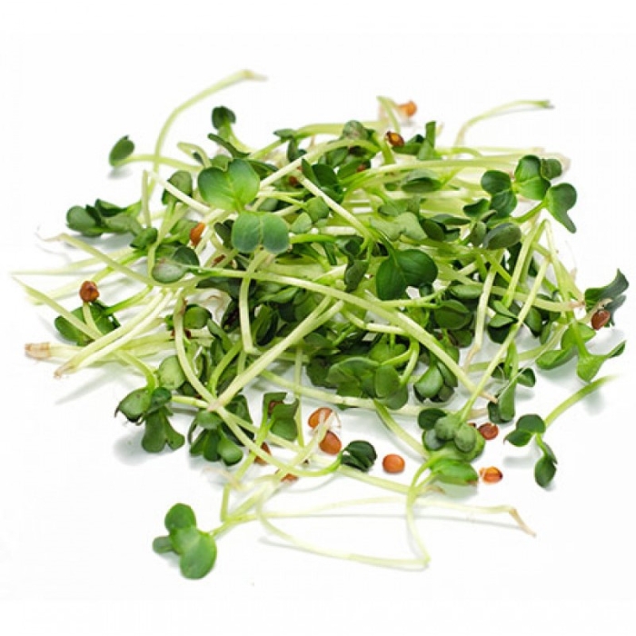 Микрозелень дайкон производится с соблюдением строгих стандартов качества, что подтверждается её органическим статусом. Внешний вид — яркие зеленые листочки с нежной текстурой, которые придают блюдам свежесть и оригинальность. Вкус и аромат этой микрозелени делают её универсальным ингредиентом, который можно использовать в различных кулинарных направлениях.Применение